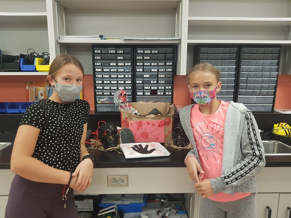 Au cours du dernier mois, les élèves de la classe de 5e année avaient relevé le défi Hack-o-ween lancé par Labo créatif. Ce défi avait pour but de créer des expositions interactives tout en encourageant le développement de compétences en conception et en ingénierie mécanique. Au cours de la visite de la maison hantée, on pouvait voir les œuvres des élèves tout au long du trajet.