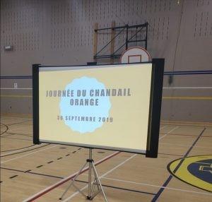 Les élèves et le personnel étaient tous réunis ce matin pour une présentation au gymnase. Les élèves de la 4e année ont présenté l’historique du pourquoi de la Journée du chandail orange.