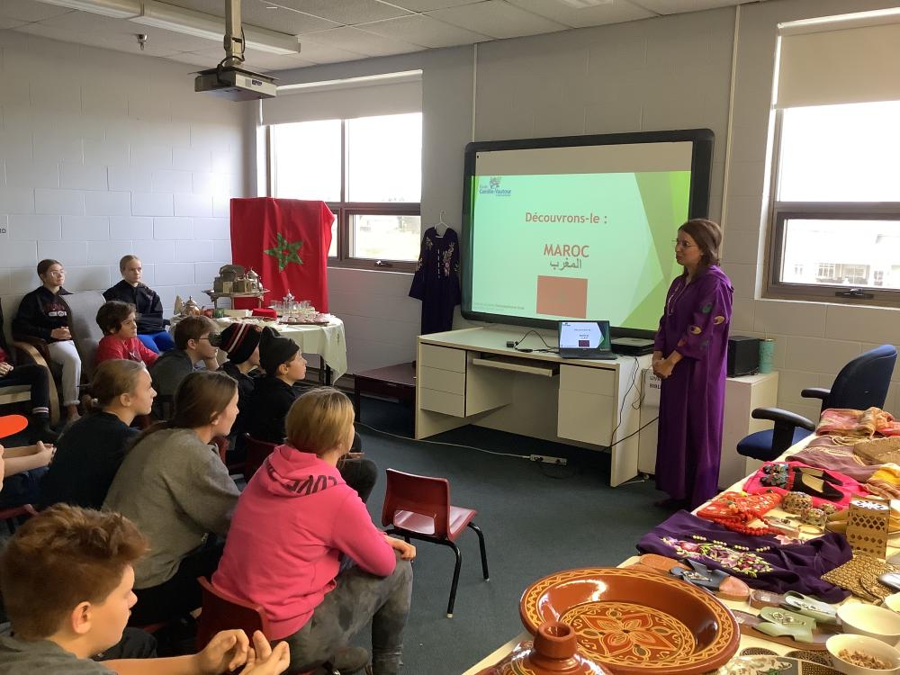 Dans le cadre de la Semaine de la promotion de la diversité et du respect, Mme Zineb Ikouassen, notre agence d'établissement scolaire a gentiment et généreusement fait une présentation sur son pays natal du Maroc.