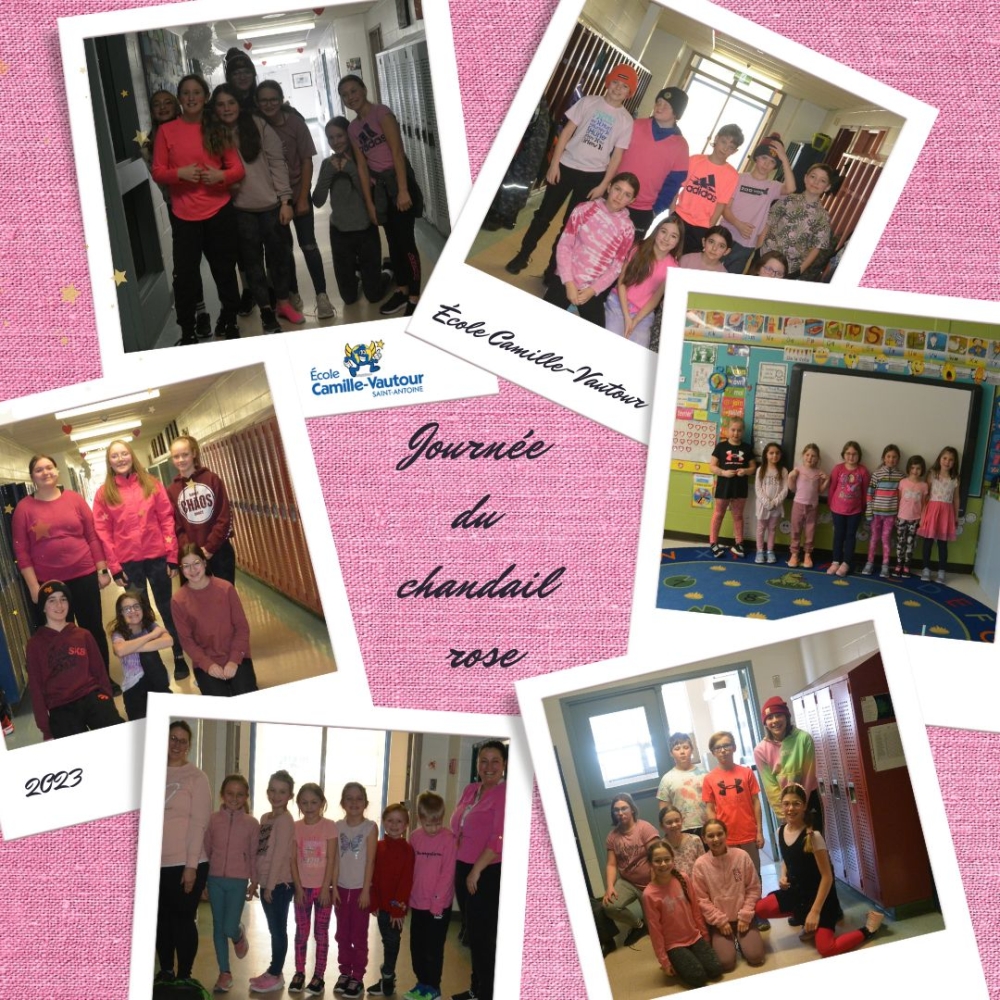 Le comité de diversité de l’École Camille-Vautour a comme mandat de promouvoir la diversité et l’inclusion au sein de la communauté scolaire. Les élèves et les membres du personnel étaient donc encouragés à porter un chandail ou un accessoire rose afin de promouvoir notre école comme un lieu sûr et inclusif. En salle de classe, les élèves ont discuté de l’importance de lutter contre l’intimidation et de faire preuve de bienveillance. Notre école reconnait l’importance de favoriser le développement des compétences socio-émotionnelles et d’encourager le développement de relations saines et égalitaires.